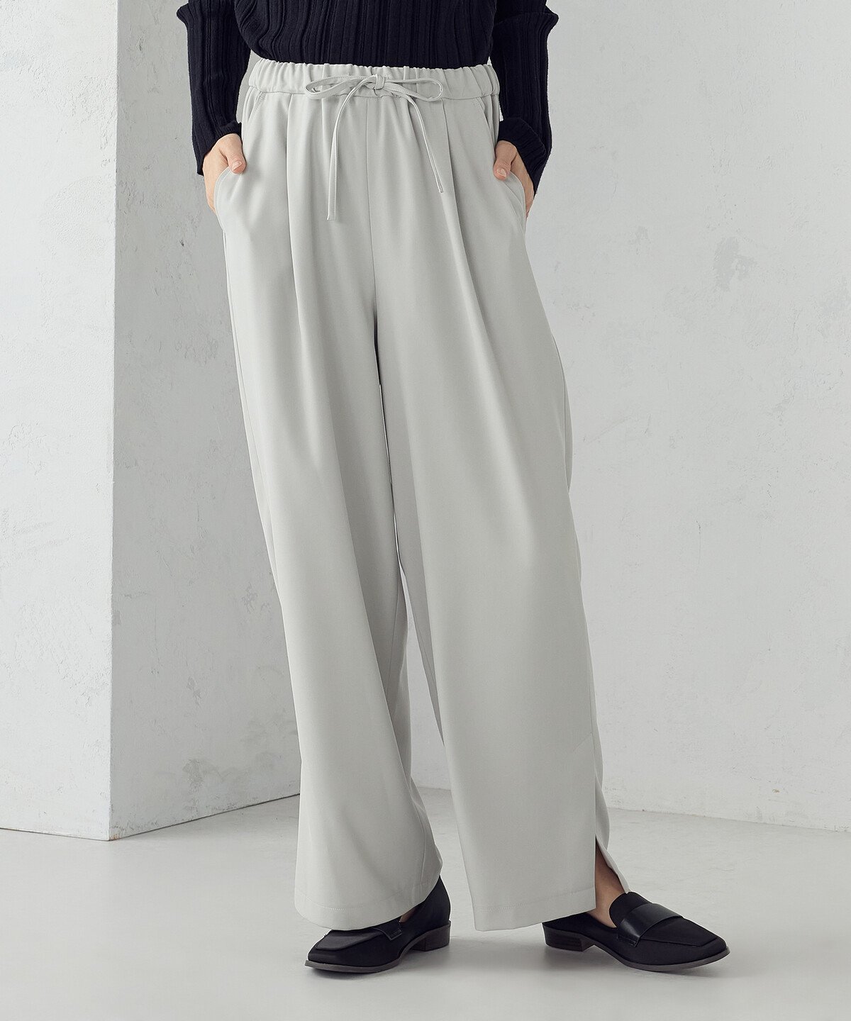 COMME CA ISM 裾スリットストレートシルエット イージーパンツ コムサイズム パンツ その他のパンツ グレー【送料無料】