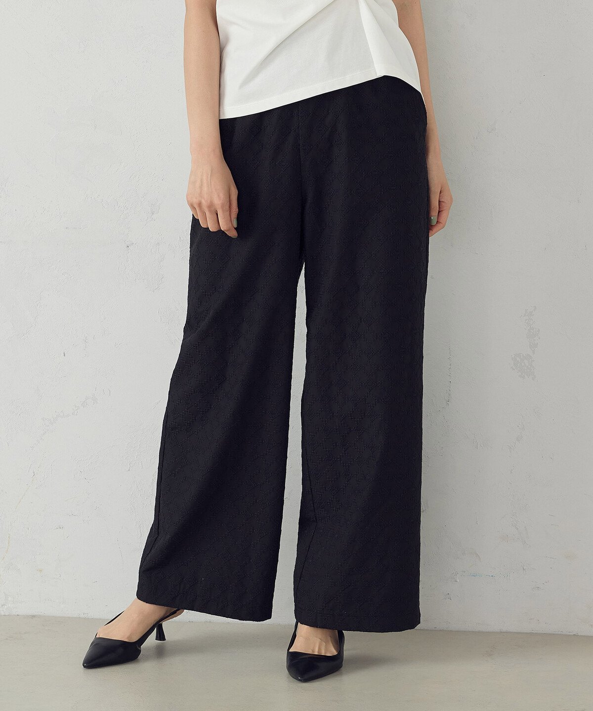 【SALE/30%OFF】COMME CA ISM エンブロイダリーレース ワイドパンツ コムサイズム パンツ その他のパンツ ブラック【送料無料】