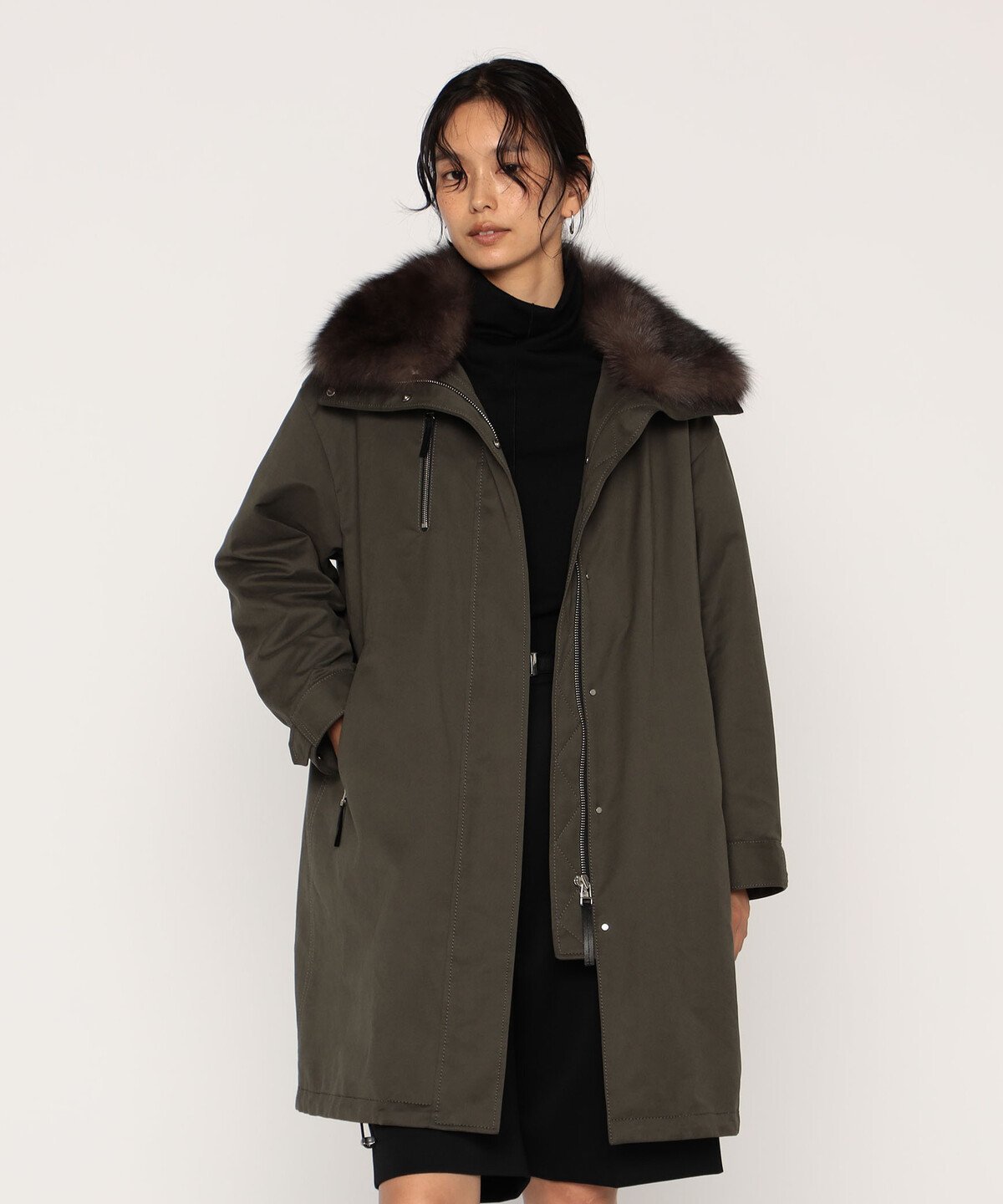 COMME CA 高密度微起毛ヴィンテージツイル ライナー付きモッズコート コムサ ジャケット・アウター モッズコート カーキグリーン ブラック【送料無料】