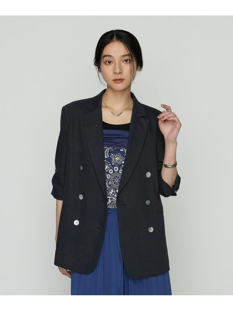 リネンストレッチ ダブルブレストジャケット K.T KIYOKO TAKASE コムサ ジャケット・アウター テーラードジャケット・ブレザー ネイビー【送料無料】[Rakuten Fashion]