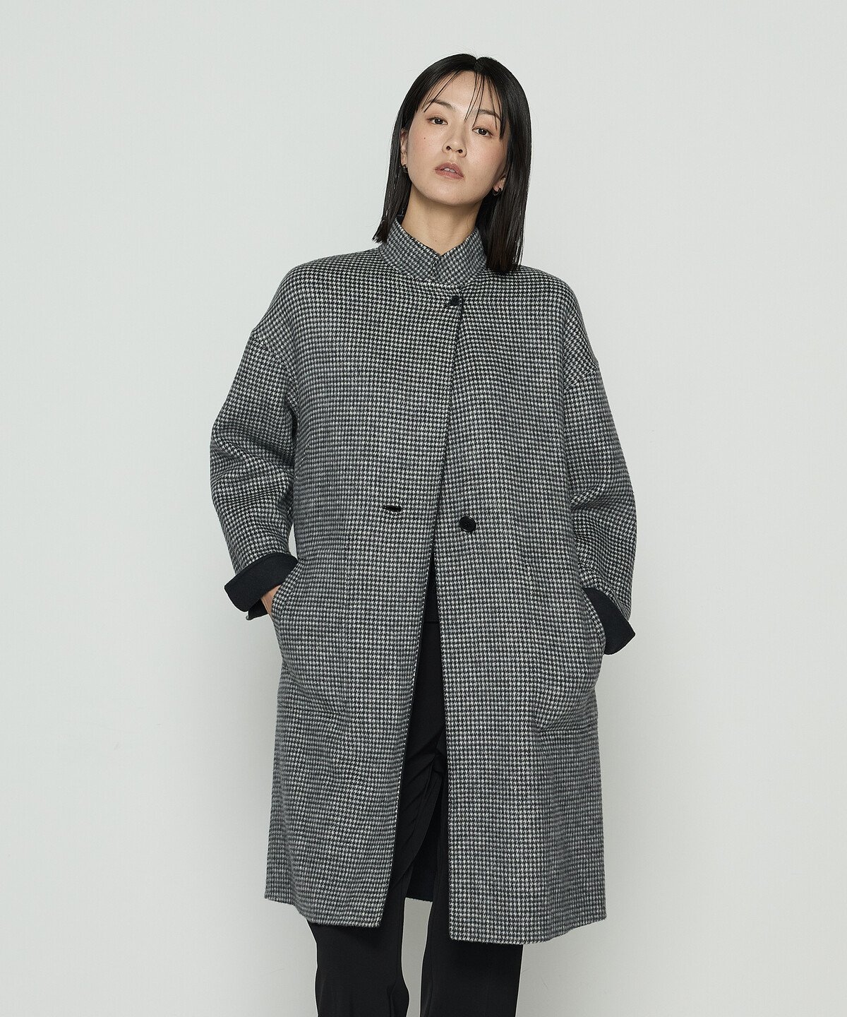 ステンカラーコート コート アンゴラウール スタンドステンカラーコート レディース