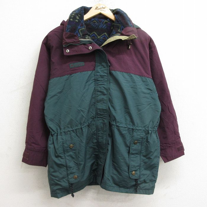 【中古】古着 コロンビア COLUMBIA 長袖ジャケットパーカー レディース 90年代 90s ツートンカラー バイカラー 大きいサイズ 2L LL ビッグシルエット ゆったり ビッグサイズ オーバーサイズ エンジ他 内側フリース 中古 アウター ジャンパー ブルゾン | 秋冬 5OF