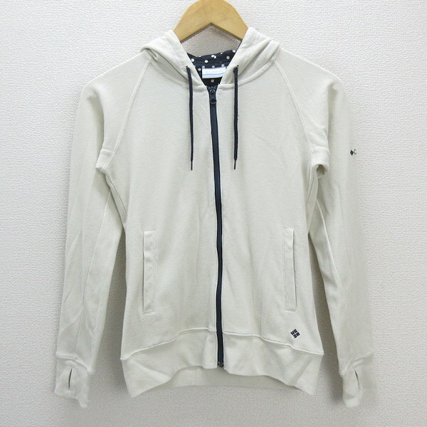Columbia コロンビア 長袖 スウェット ジップパーカー M ベージュ アウトドア 裏起毛 レディース 古着 中古