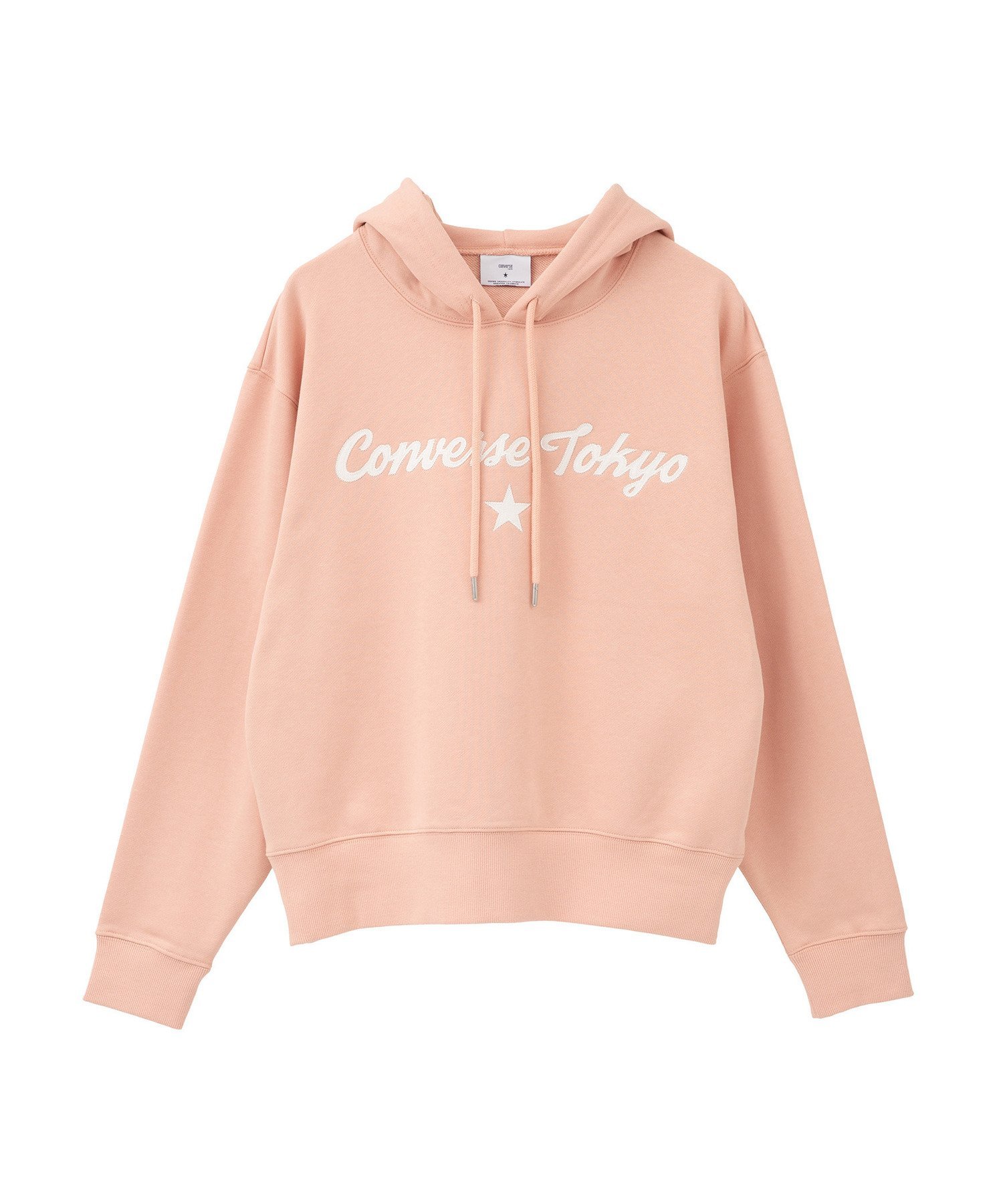 CONVERSE TOKYO WOMEN LOGO EMBROIDERY SHORT HOODIE コンバーストウキョウ トップス パーカー・フーディー ピンク グレー ブラウン【送料無料】
