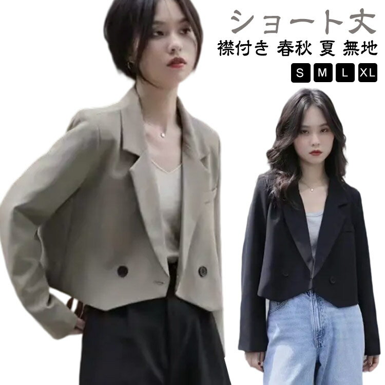 ダブル テーラードジャケット ボタン レディース ジャケット 長袖 ショートジャケット 羽織り 春 夏 コート ショート丈 テーラード ショートテーラード 薄手 裏地あり ライトアウター 秋 ショート 黒 韓国ファッション 大人 春コーデ 上品