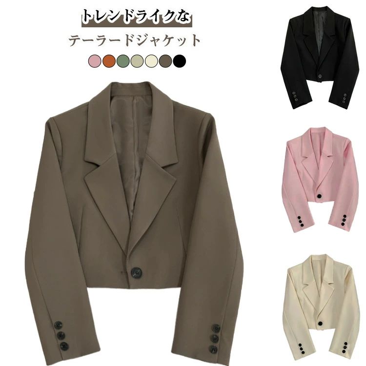 ショート テーラードジャケット 羽織り 秋 レディース オフィス テーラードジャケット テーラード 無地 ショート丈 コート アウ