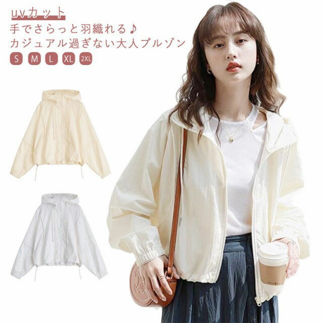 春 ラッシュガード 夏 uvカット ジャケット ブルゾン 撥水 長袖 ショート丈 ライトアウター 薄手 フード付き uvカット 涼しい 前開き おしゃれ コート レディース 羽織り 紫外線対策 無地 体型カバー ゆったり ジップアップパーカー マウンテンパーカー 日焼け防止