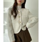 コート アウター ノーカラーツイードジャケット レディース