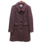 ローラアシュレイ LAURA ASHLEY 総柄 ジャガード ステンカラー コート ウール混 バーガンディ 38 レディース