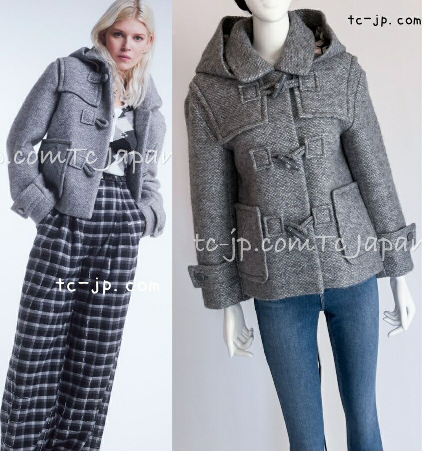 シャネ ル【CHANEL】ウール ダッフルコート ツイード×ウールのコンビ素材Black Gray Wool Duffle Coat/ MANTEAU 黒/BLACK /NOIR34 /11A フランス製 ランクNEW タグ付き新品 (中古)