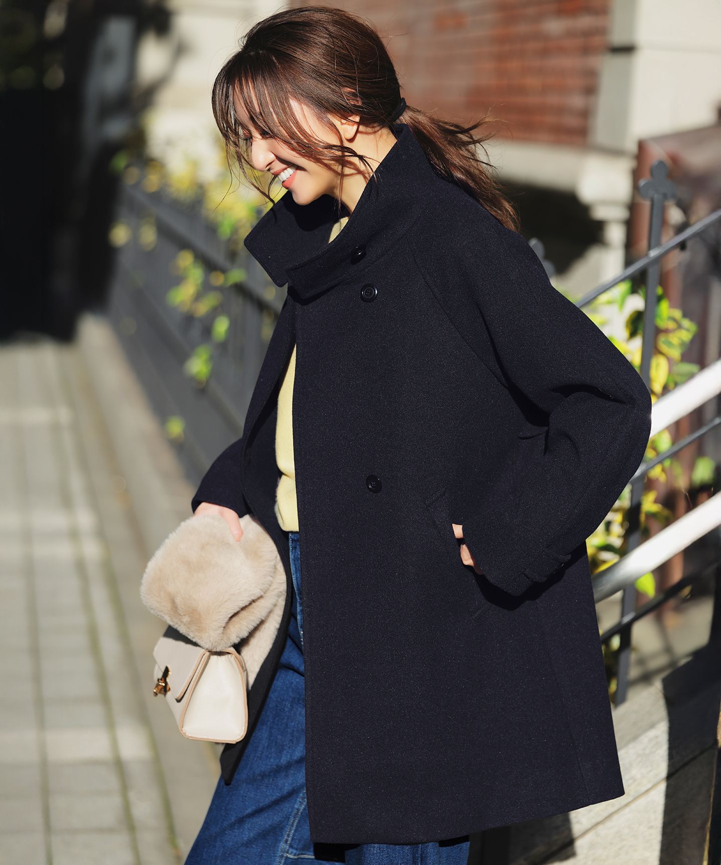 ANY SIS(エニィスィス)/ウールライクスタンドカラー ミドルコート