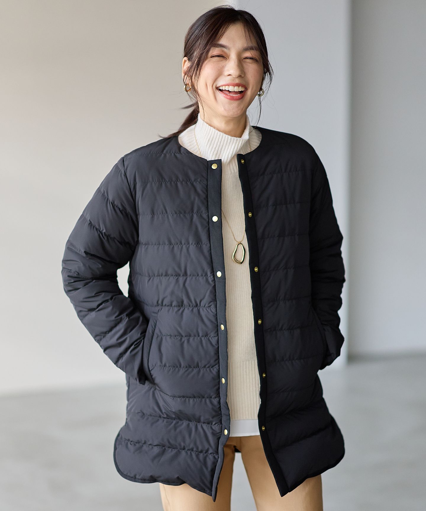 コート アウター 撥水加工・機能中綿 ジップアップリブロングコート レディース