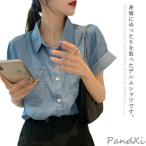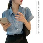 デニムシャツ カジュアルシャツ レディース 半袖シャツ ブラウス ウェスタンシャツ ドロップショルダー ゆったり トップス 大きいサイズ おしゃれ 無