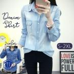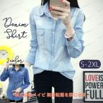 シャツ レディース デニムシャツ 長袖シャツ 綿 コットン トップス 羽織 デニムジャケット 秋冬 秋アウター ゆるシャツ ブラウス ウェスタンシャツ