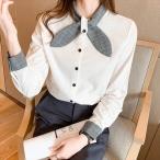 ブラウス レディース 女性用 ワンカラー ホワイト ウェスタン リボン チェック シフォン タイト ロングスリーブ ストレート シャツ袖 大きめサイズ