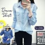 デニムシャツ レディース 長袖 ダンガリーシャツ ベーシック ウェスタン ウエスタン 大きいサイズ ウォッシュタイプ ス 女性 羽織 ブルー ネ