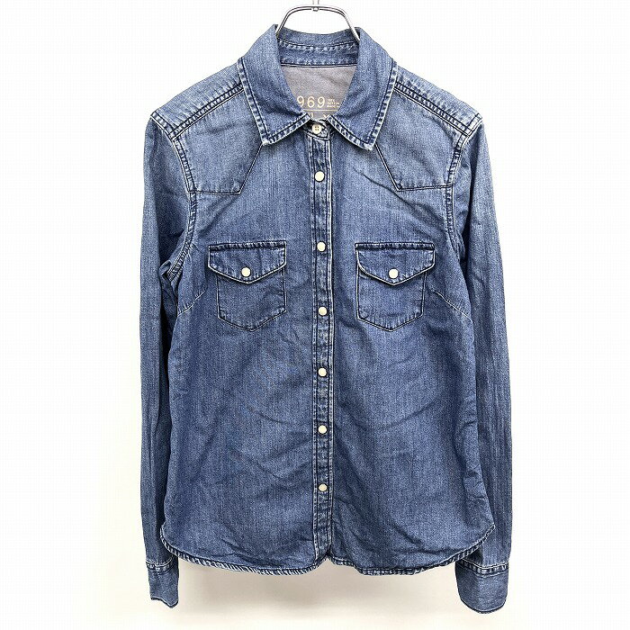 【楽天スーパーSALE限定!! \★35%OFF★/対象商品|12月4日(木)20時00分〜12月11日(木)01時59分まで】【中古】GAP ギャップ XS レディース 女性 デニム ウエスタンシャツ ドットボタン留め 無地 レギュラーカラー 長袖 両胸ポケット 綿100% ブルー 青