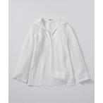 SALON adam et rope' リネンスキッパーギャザーブラウス[GENTLE LINEN] サロン アダム エ ロペ トップス シャツ・ブラウス ブラック ホワイト グレー ブルー【送料無料】
