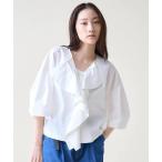 ブラウス シャツ 「LOEFF」コットン ブロード フリル スキッパー シャツ レディース