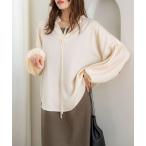 tシャツ SHIPS any:「手洗い可能」起毛 レース 開襟 スキッパー プルオーバー レディース