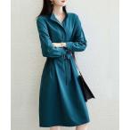 ワンピース SHIPS any:「洗濯機可能」サージ スキッパー シャツ ワンピース