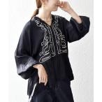 ブラウス シャツ SHIPS any:「洗濯機可能」サテン 刺繍 スキッパー ペプラム ブラウス レディース