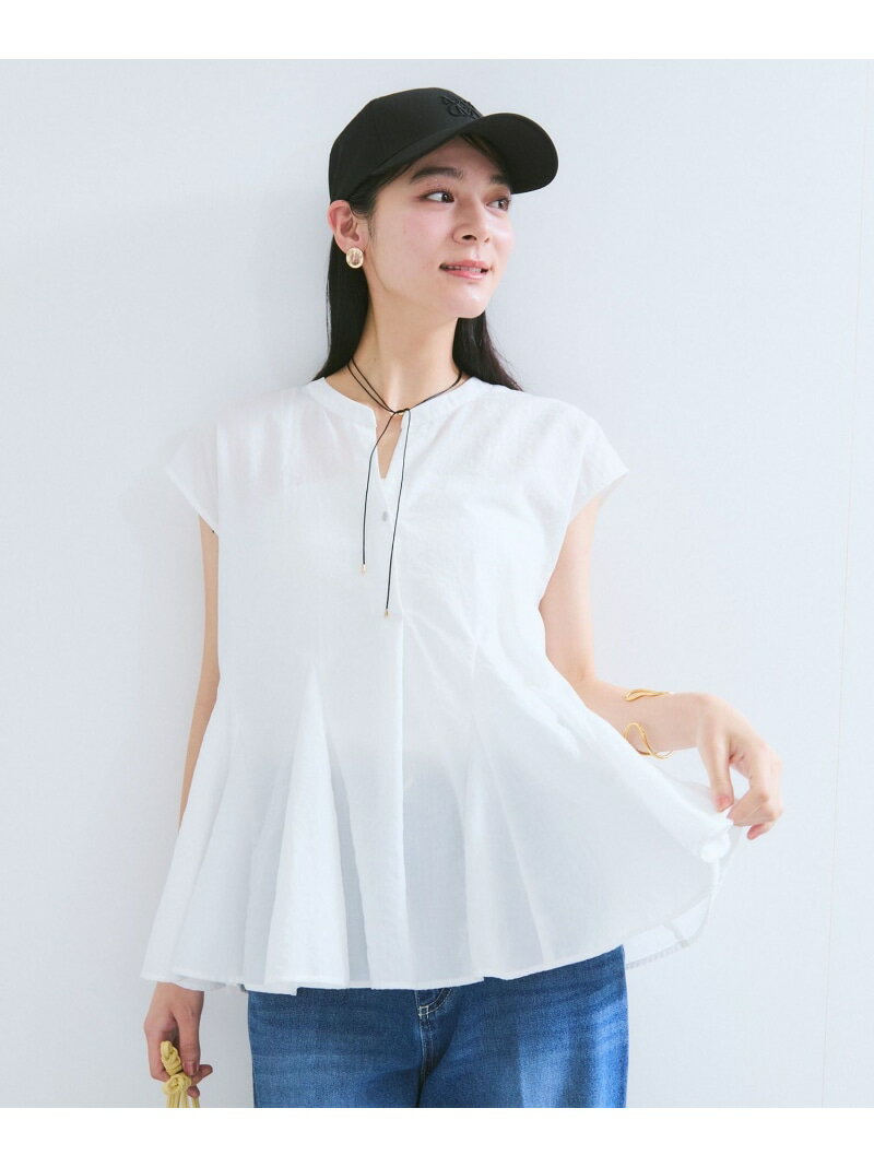 ブラウス シャツ quaranciel:「洗濯機可能」リネン ミックス フロントギャザー スキッパー シャツ レディース