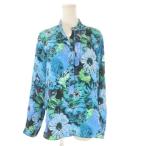 ステラマッカートニー STELLA McCARTNEY フラワー プリント シャツ 36 青 ブルー 花柄 バンドカラー スキッパー 長袖 レディース