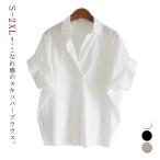 シャツ レディース ドルマン シャツブラウス スキッパー ブラウス 夏 トレンド 二の腕カバー 半袖シャツ 抜け感 Vネック 体型カバー 着痩せ ドルマン オフィス