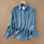 リヨセル テンセル デニムシャツ レディース ソフトデニム ロング ダンガリーシャツ 長袖 シャツ ウエスタンシャ
