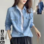 デニムシャツ レディース ダンガリーシャツ シャツ 長袖 トップス 前開き ゆったり カジュアル オフィス 大きいサイズ 着痩せ アウター