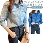 デニムシャツ デニム シャツ 長袖 ブラウス レディース 春 ウエスタンシャツ ダンガリーシャツ ウォッシュ加工 春秋 カジュアル スプリングコート