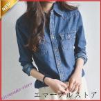 デニムシャツ レディース 長袖 ダンガリーシャツ ウエスタンシャツ ス ブラウス ウエスタンデニム サックス ブルー 春 カジュアル シャツ お