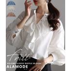 ブラウス シャツ ダンガリーフリルブラウス レディース