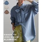 レディース トップス シャツ ブラウス ボウタイ リボン 2way ダンガリー ブラウン ブルー ホワイト 大人可愛い 大人 可愛い 30代 40代 50代 60代 サワアラモード