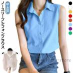 シャツ レディース シフォン シャツ 襟付き 夏服 開襟 シャツ ノースリーブ カジュアル ノースリーブ 大人 ブラウス シンプル 大きいサイズ 重ね