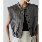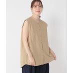 ブラウス シャツ ノーカラーポケットノースリーブシャツ レディース