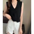 tシャツ ノースリーブ Vネック サマーニット レディース