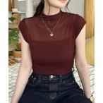 tシャツ ノースリーブ ハイネックシアートップス レディース