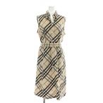 BURBERRY LONDON ワンピース シャツ ノースリーブ ひざ丈 ノバチェック ベルト付き 44 XL ベージュ FMB51-031-42