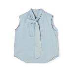 ブラウス シャツ コットンセルロースデニム ボウタイノースリーブブラウス レディース