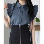 ブラウス シャツ リボン付きフリルノースリーブブラウス「着回し力抜群 フレンチガーリー」「SS新作」 レディース