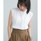 tシャツ さらり、大人こなれ感。オーガニックコットン ノースリーブ シンプル ハイネックリブニット レディース