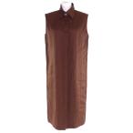美品△HERMES エルメス ヴィンテージ リネン100% マルジェラ期 Hロゴボタン ノースリーブ シャツ ワンピース ブラウン 40 仏製 正規品