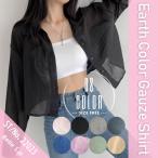 シャツ カーデ カーディガン 羽織り シアー 重ね着 ロールアップ レディース 韓国ファッション シンプル 大人 かわいい くすみカラー 冷房対策