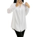シャツ ブラウス 長袖 無地 ロールアップ スリーブ ワイシャツ 長め ポケットレス レディース 女性 用 春 夏(ホワイト, M)