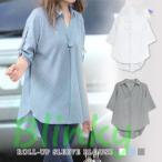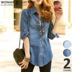 ブラウス シャツ ロールアップデニムロングシャツ レディース