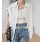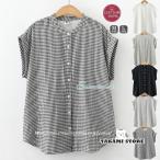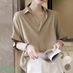 フレンチスリーブ トップス 半袖 半袖 シャツ レディース カジュアル ロールアップ フレンチスリーブ スタンド衿 ブラウス 羽織り ポケット付き