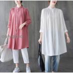 ブラウス シャツ トップス シャツブラウス 長袖 無地 レディース チュニック 体型カバー 前後差 着痩せ ゆったり 大きいサイズ ホワイト 白シャツ 40代