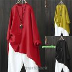 シャツ ブラウス レディース チュニックシャツ ロングシャツ 綿麻混 オーバーサイズ チュニック 無地 長袖 ロールアップ 体型カバー